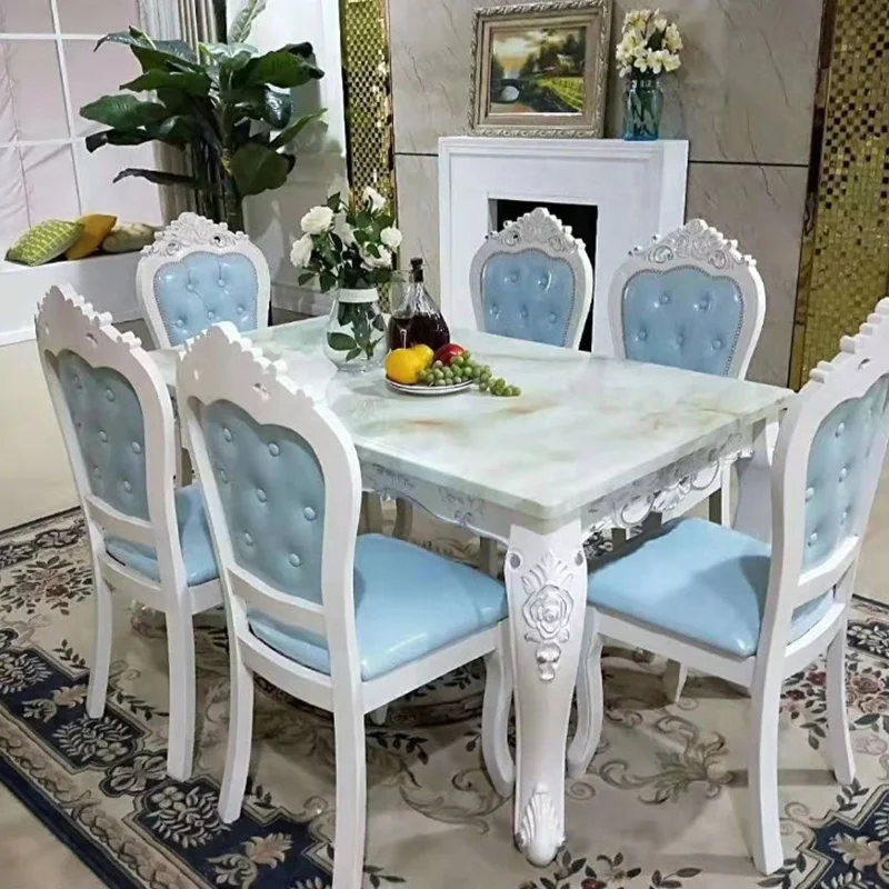 Luxury European Style Handmade Solid Wood Dining Table Rectangular Restaurant Tables Royal Wooden Kursi Makan Meja Makan Perabot